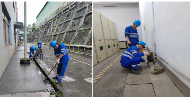 1、活动期间,双马电站开展以安全生产月为契机,继续加强“三不发生”、“安全大检查”、“抓基础、控风险、防事故”等工作,炎热夏季是雷暴雨频发季节,也是电站每年重点的隐患排查治理时间。按照活动计划安排组织员工对生产厂房周围排水沟清理及配电室排水设施检查。